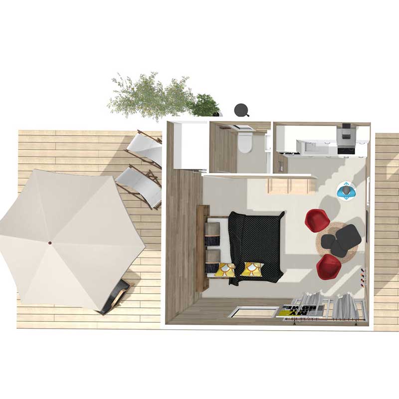 Els nous xalets tindran un dormitori doble, lavabo amb dutxa XL, un espai obert forrat de fusta amb cuina-sala d’estar totalment equipada i una fantàstica terrassa de fusta, en un entorn molt tranquil, envoltat de natura.